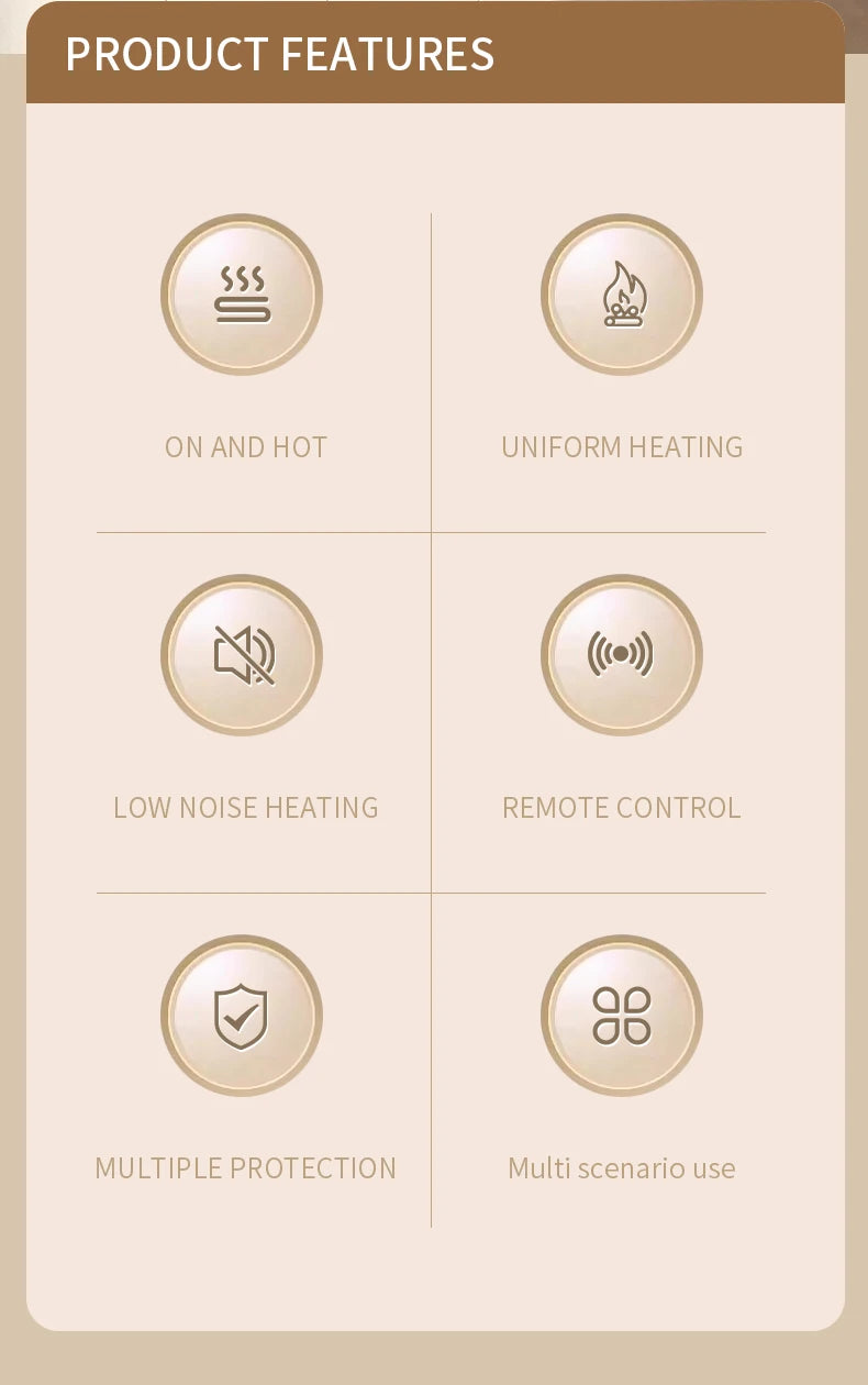 1. Chauffage instantané : Chauffe immédiatement dès l'allumage, procurant une chaleur immédiate.