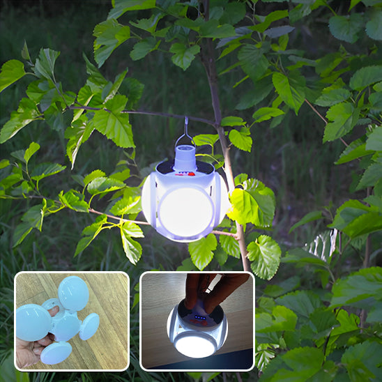 1. Ampoule de football pliable améliorée : notre lampe de camping a un design unique en forme de ballon de football avec 45 perles LED, apportant une lumière super brillante. Avec 4 panneaux d'éclairage pliables, les lampes de camping solaires peuvent éclairer à 360 degrés d'obscurité.