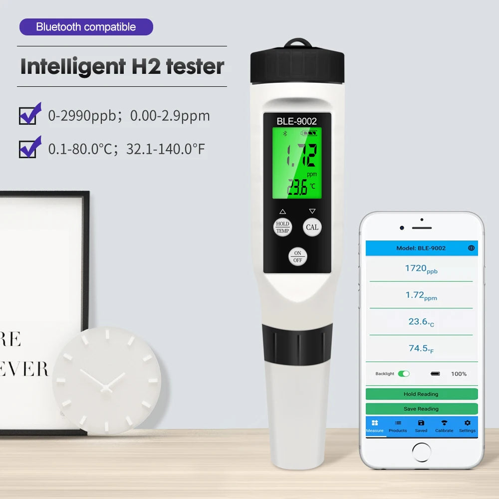 Testeur d'hydrogène H2 compatible avec les dents bleues, analyseur de qualité de l'eau à Auto-étalonnage 0-2990 PPB pour l'eau riche en hydrogène